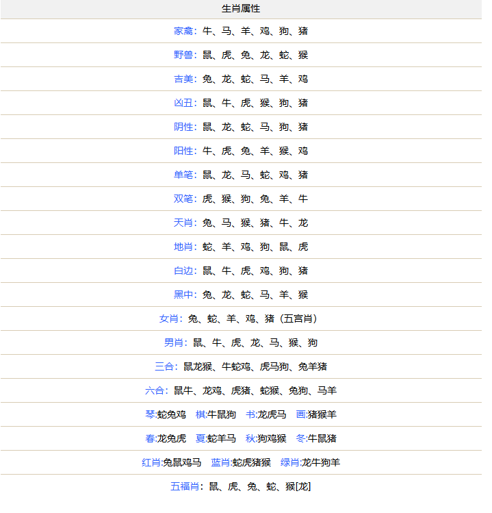 | 春:兔虎龙-夏:蛇马羊-秋:猴鸡狗-冬:鼠猪牛 |